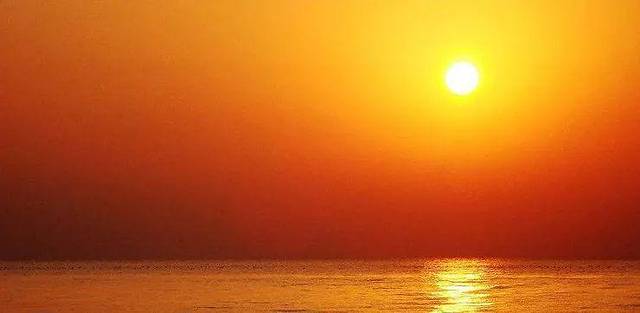 它从海平面上冉冉升起,就像红扑扑的磨盘一样,给人光明、希望、力量!