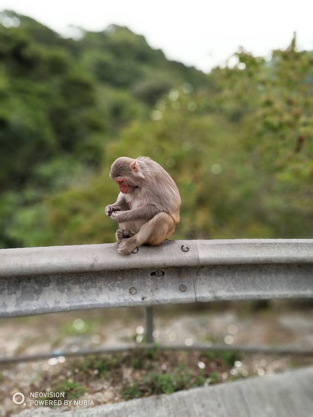 马路边上,即见一群猴子悠悠然地看着匆匆来往的车与人。