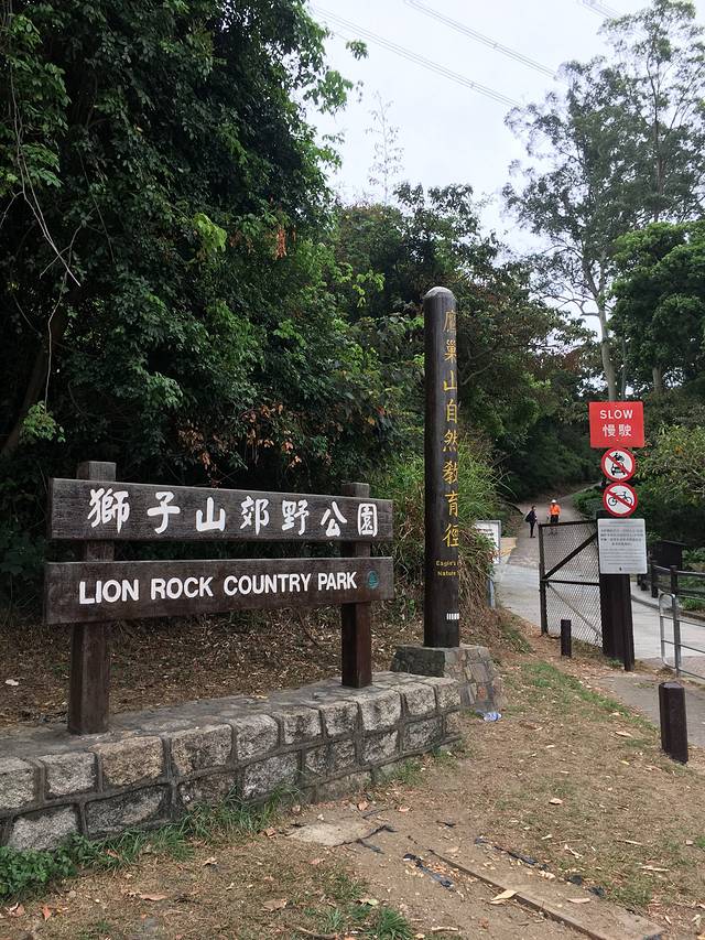 坐的士至大埔路与金山路交界处的公交车站台下车,此处是麦理浩径第五段的终点,狮子山郊野公园。过马路即可见金山郊野公园的路牌。