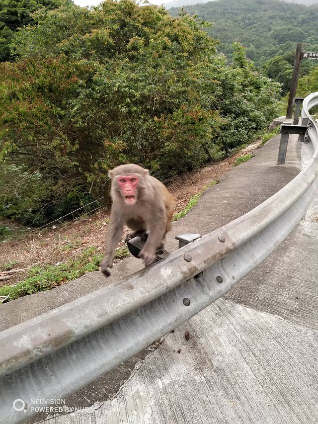 此段起点是猴山,大群的猴子很优闲地在路上玩,禁止游客喂食。我们从猴子身边走、合照,它们也不会攻击人,最多对人咧嘴恐吓就走了。