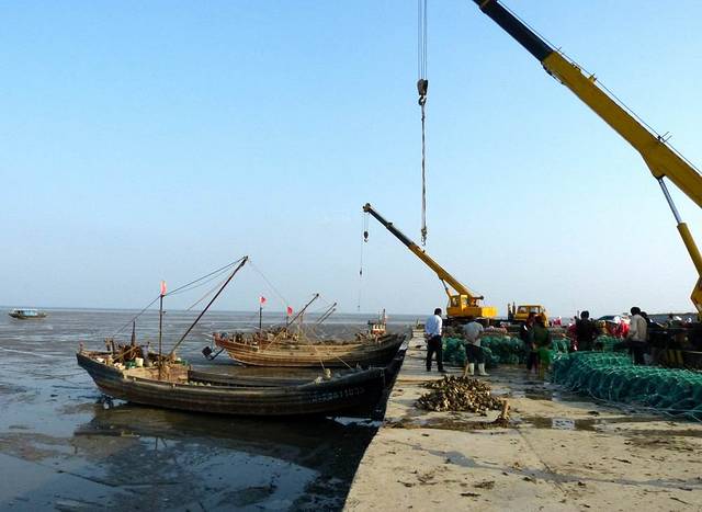 为了拍照,第二天返回大连时,我们没有走高速公路,而是走了滨海公路。这是等候出海的渔船
