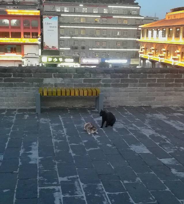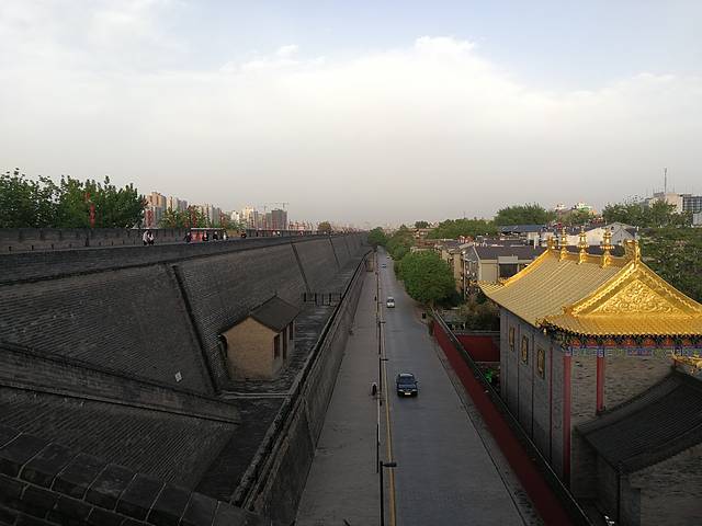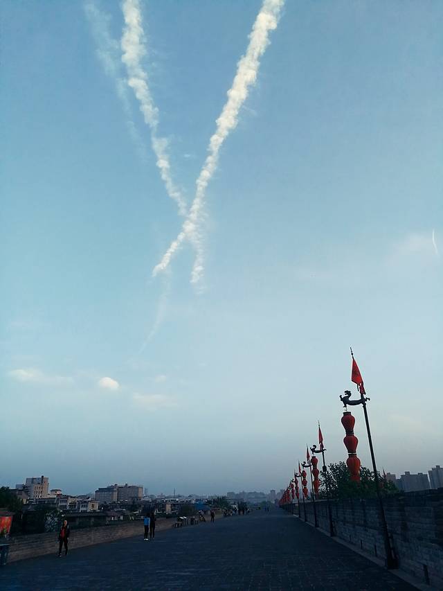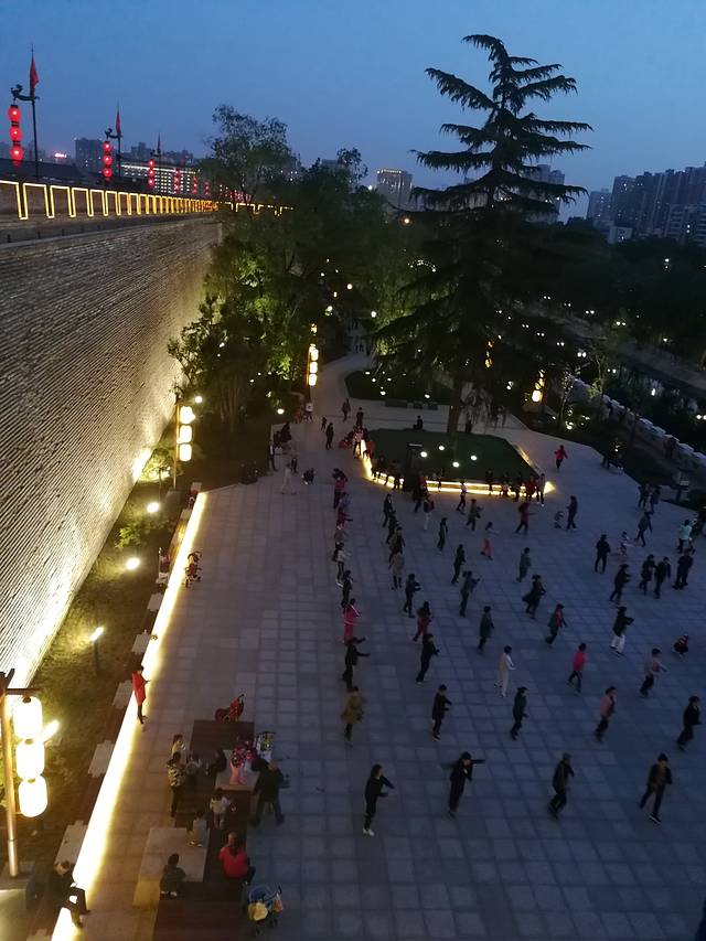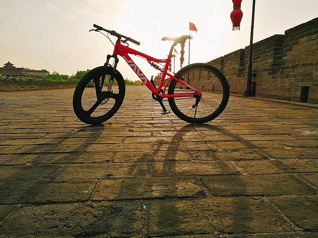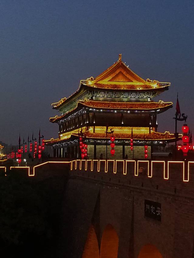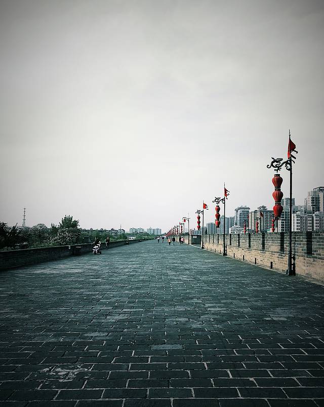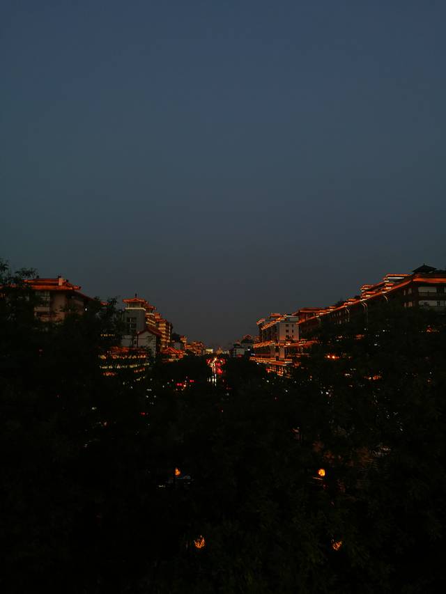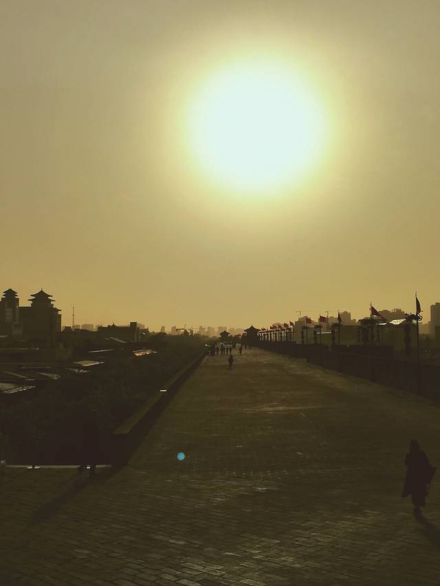 从大雁塔转了一趟公交去到南门,上去之后就租了个自行车,45元3个小时,200元押金,然后计划骑一圈等天黑,但是我高估了自己骑山地车的水平,骑了一会就觉得腰酸胳膊疼,但是城墙上很冷,如果坐着等天黑不太现实,只好慢慢继续骑,一直骑了四分之三圈才终于等到天擦黑,不过真的很美,而且人开始少了之后,不知道为什么突然有种新龙门客栈的感觉。