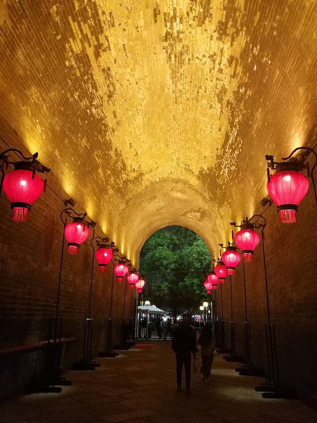 骑了四分之三圈,看完夜景准备去找吃的,结果发现要再走回前一个门才有吃的,只好又骑着小黄车沿着城墙根骑了剩余的四分之一。