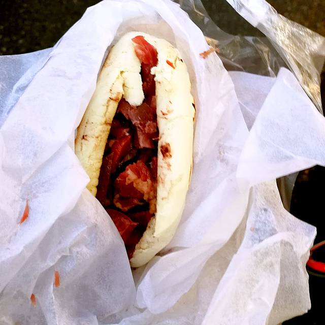 刘纪孝腊牛羊肉店,这家好多人,只收现金,袋子要收钱,我去的时候看没人,于是觉得买个肉夹馍试试,肉夹馍十六元一个,结果店员问说你买肉夹馍有带馍吗?好吧,买肉夹馍还要自带馍真的是厉害了,于是我去旁边的店里买了一个馍,终于吃上了肉夹馍,说实话有点干有点咸,没有想象的好吃。