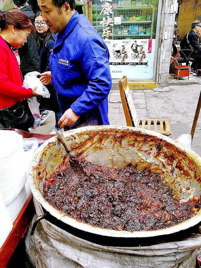 这家按知乎上推荐去的,说是坊上人都去这家吃,味道不错,也的确很多当地人坐在那里一边聊天,一边掰馍,我比较没经验,馍掰得得太大,不够进味,不过汤很浓,羊肉几乎没有膻味,味道还是很不错的。哦,这家只收现金,记得带现金,顺便带湿纸巾擦手,不然摸完钱掰馍感觉真是。。。