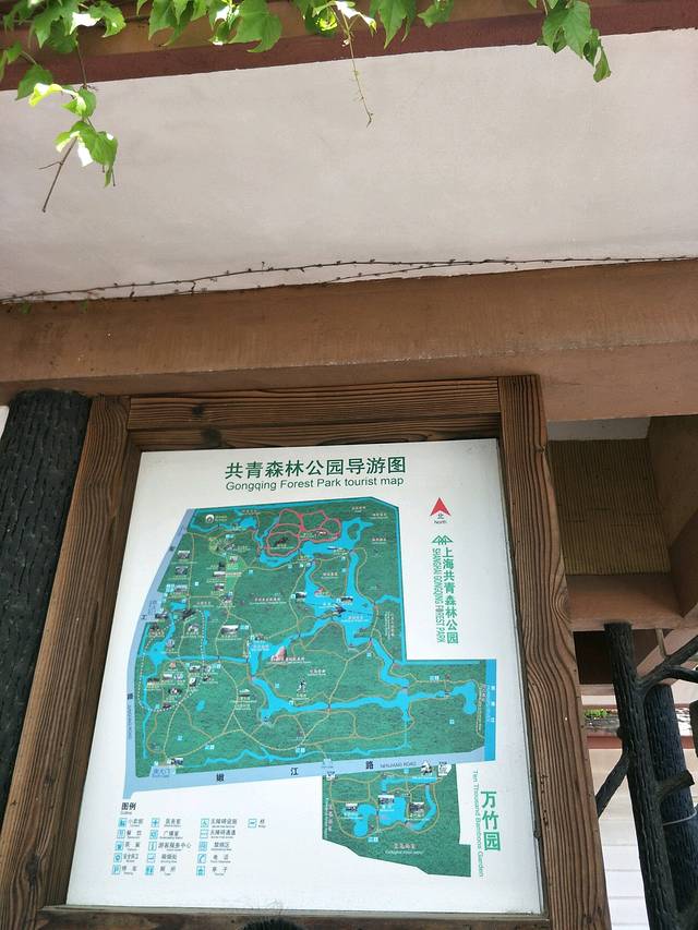 共青森林公园位于上海市杨浦区,东濒黄浦江,西临军工路,全园总占地1965亩,开放公共绿地1870.6亩,其中北园“共青森林公园”1631亩,南园“万竹园”239.6亩