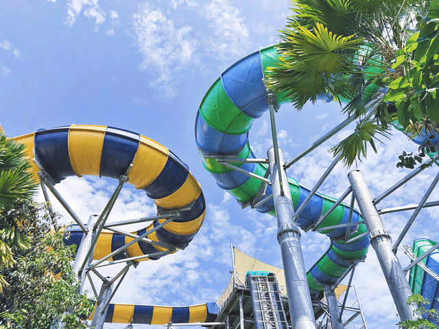 热带雨林里的水上乐园,各种惊险刺激的滑梯埋藏在树林里,玩的时候就像在丛林间飞越般的感觉,整个亚洲只有这里能感受到了。