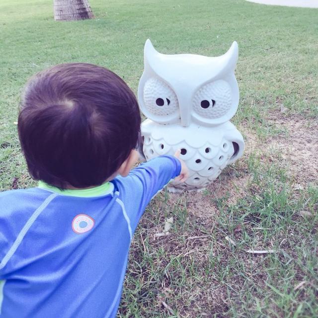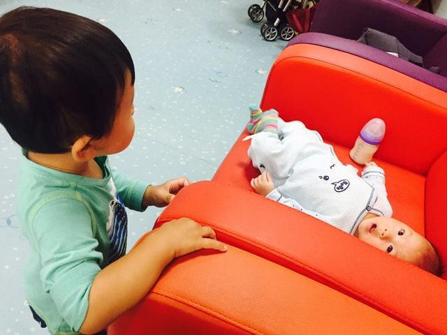 在育婴室看一个小娃娃,我特别担心他会去碰人家,还好他们只是用眼神交流
