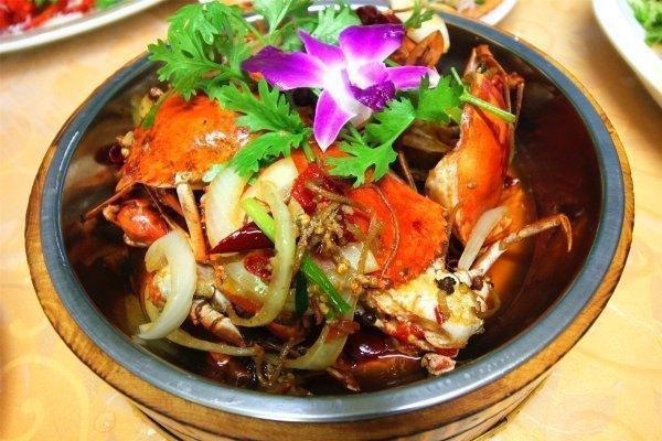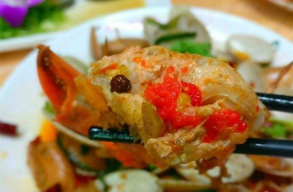 香辣和乐蟹,加入洋葱、香葱、花椒等调料,点缀的鲜花和香菜煞是好看,哇,真的是满口黄,这个是小妹强烈推荐的,果然不负众望。