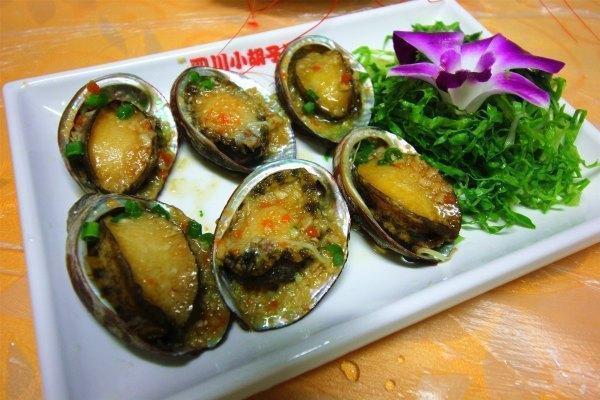 鲍鱼一只只融入了蒜,Q弹到爆,一个劲的点赞说在上海真的吃不到这么好的呢!