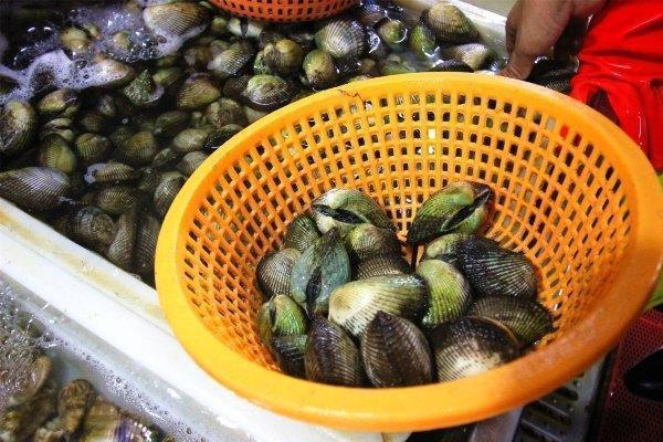 贝壳类可是最多的品种,老公一眼就看中了毛蚶,来上两斤,对了这里可以一个一个挑选,这样不会有死掉的海鲜。我倒是对着橙色的贝壳很感兴趣呢,长得也很讨人喜欢。