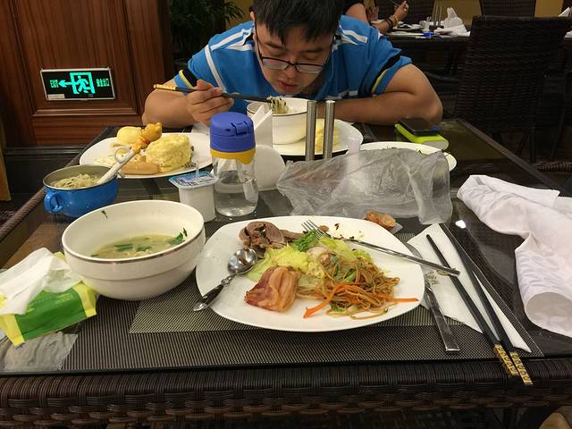 第二天一早,我们一起去了酒店的自助早餐,由于是工作日人不是特别多,早餐的品种也不是太多但是很精致,盐城的特色好像是鱼汤面所以我们一人要了一碗面,真的非常不错,很鲜小孩也特别喜欢,还有他们的红烧河鲫鱼也非常不错,其他的都是一些大众化的自助早餐该有的菜品,不过值得一说就是他们的服务特别好,我就随口对我老公说了一句给我来杯黑咖啡吧,服务人员听到以后立马给我倒了一杯,给我感觉很贴心,其他的客人离开后我看到那些服务人员很细心的清理桌面让我感觉也很专业。