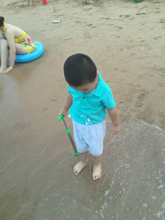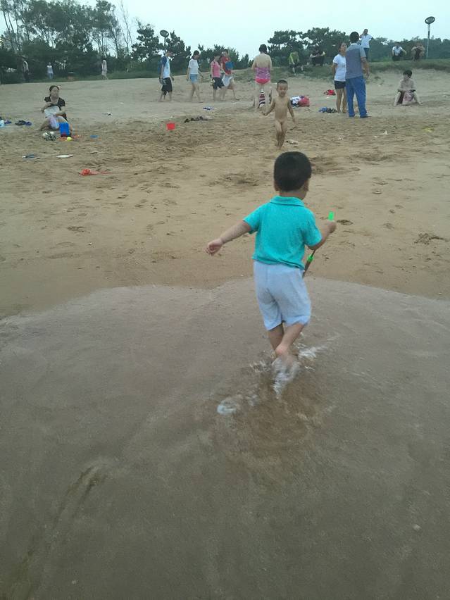 海水把裤子全弄湿了只能占时脱了裤子玩耍