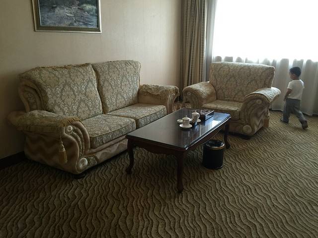 开了4个小时的车到了酒店,就感觉酒店周边稍嫌冷清了,4点多到的酒店还要我们等在大厅,这点我很不能理解,本来都已经很累了,还要等,主要是这个大厅又不是很大,而且还有人结婚,就把本来就不是很大的厅弄得更加小了,而且大厅看上去也很杂乱,这个还能算是4星?虽然说服务人员还是比较客气的,但是太忙导致没有给我门卡这件事情的都不记得了,还一味的说给我了卡,后来找半天才发现在他们自己这里,这点我不是特别满意。