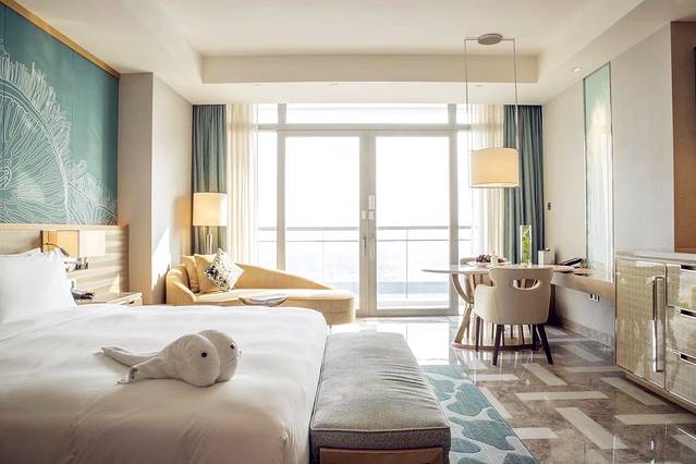 至尊海景房,3588两晚含双人早餐、欢迎水果、失落的空间水族馆体验、水世界体验和日料套餐一份。个人觉得,这么便宜大碗的轻奢酒店体验价,跟迪拜棕榈岛的那间顶级奢侈酒店属于同宗同源,还要什么自行车。