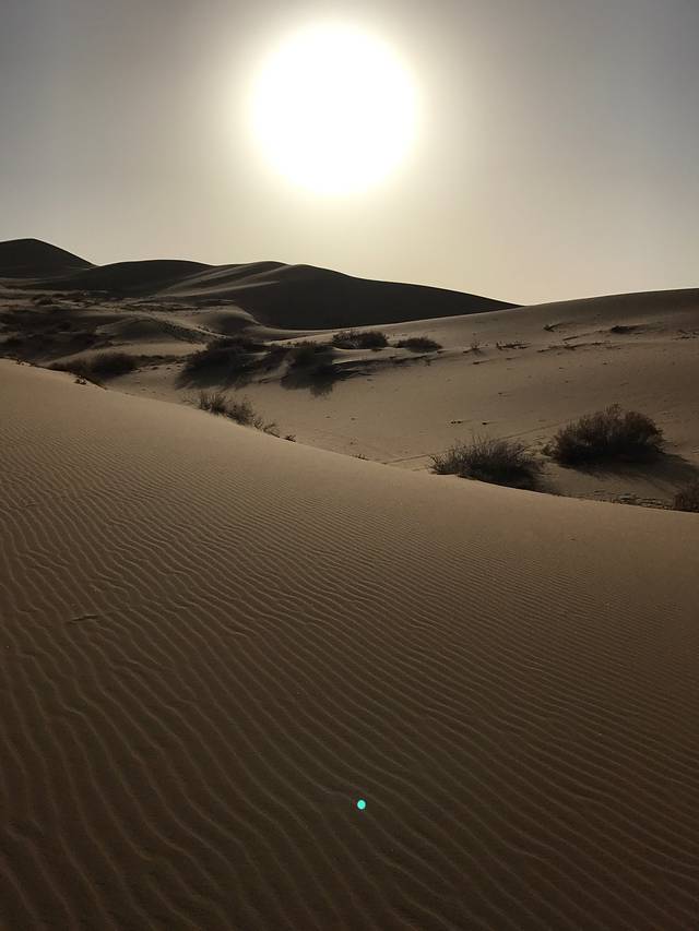 第一天露营地,据他们所说已经举办第21期腾格里沙漠亲子研学活动了,来过至少18次的老师说第一次遇见这么恶劣的天气,狂风狂沙的,夜里感觉风沙要连人帐篷一起带走的意思😨😱!脚丫子一边贴一个暖宝贴,后腰再贴一个都没管用,一直好冷,风沙过后的第二天早晨阳光灿烂,景色宜人,所有人安然无恙,感受最美的大漠。
