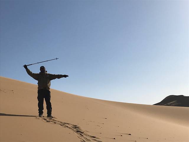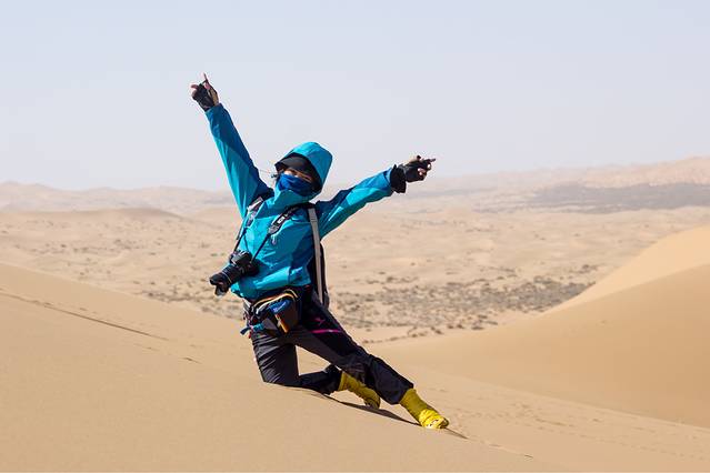 2、衣物最好是户外登山冲锋衣,户外裤,夏天可以薄款的,早晚温差较大,户外登山鞋,佩戴防沙套,沙子进鞋不舒服。