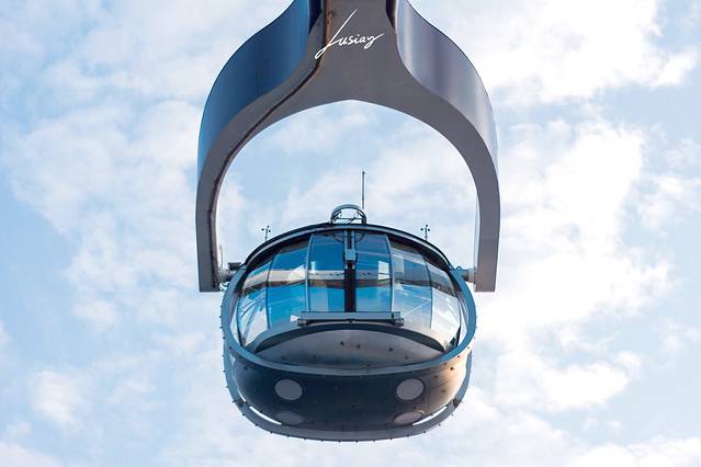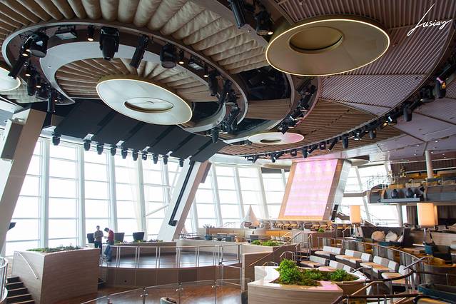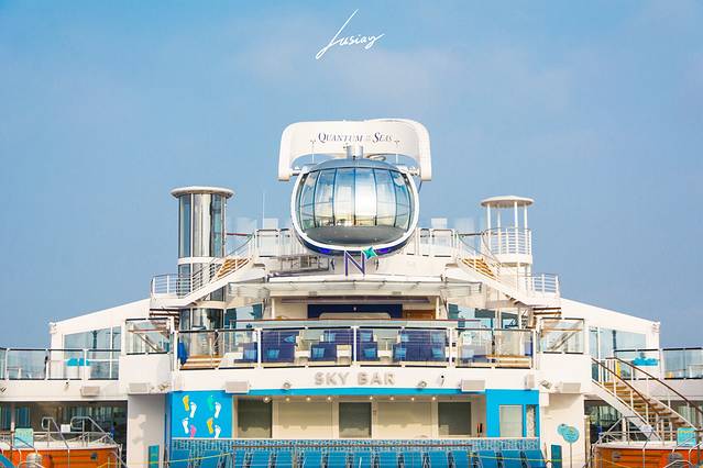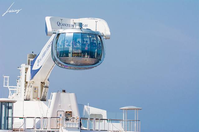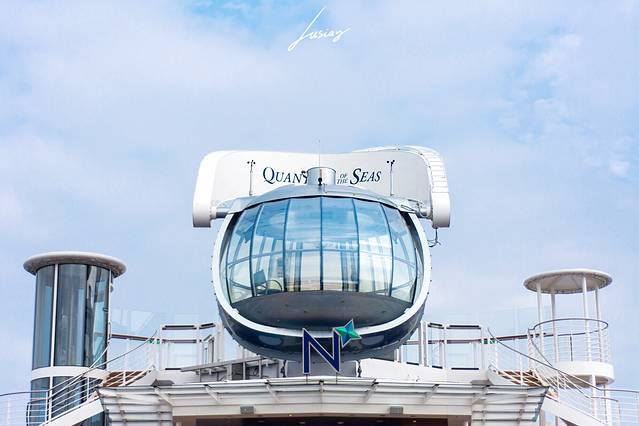 北极星是船上海拔最高点,可以将游客送到离海平面91的高空,360度旋转,全览海洋量子号。