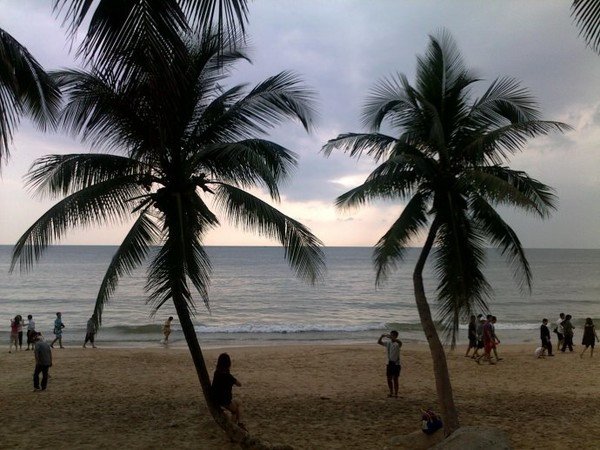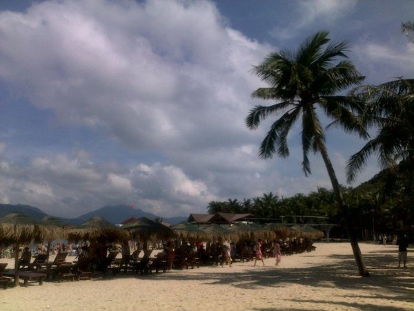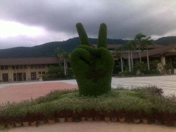 第二天,六点半酒店Morning Call,七点早餐,清淡得不能再清淡,同行的伙伴们如是说。开始真正的行程。第一站,博鳌,玉带滩。江海湖汇合的玉带滩,没有感觉中的美丽,只留下浑浊的感觉。下午兴隆,热带植物园。天气不错,拍到一张美丽的椰景。