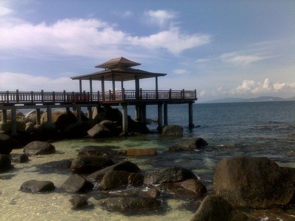 最后一天,亚龙湾度假区,贝壳馆、中心广场。可能是出来有那么几天时间里,大家开始累了,已经没有多大心思跑到美丽的沙滩上过把瘾了,只是匆匆的瞥了下所谓的“天下第一湾”,结束三亚的行程。启程返回海口,路上再走最后一个景点,文笔峰。晚六点左右,在奥特莱斯用餐,选择了一家人很多的店,餐厅环境不赖,另外价格综合起来性价比较高,味道是我们喜欢的香辣味,海鲜处理的很棒,做的很入味,没想到旅游景区有这么好的海鲜餐厅,很不错。