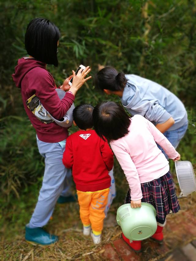 看到小朋友捡田螺的样子,可可妹也有模有样地学了起来。一心寻着田螺的踪影,忘记了沾满双手和衣裙的泥巴。衣服脏了可以洗,田螺捡不够,可是会饿肚子的哦~