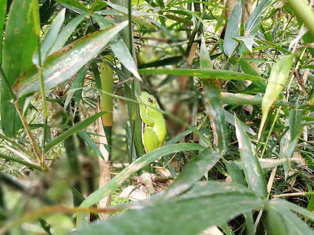 路上遇到一只树蛙,小伙伴们都疯了,围着竹子,拍了好几转
