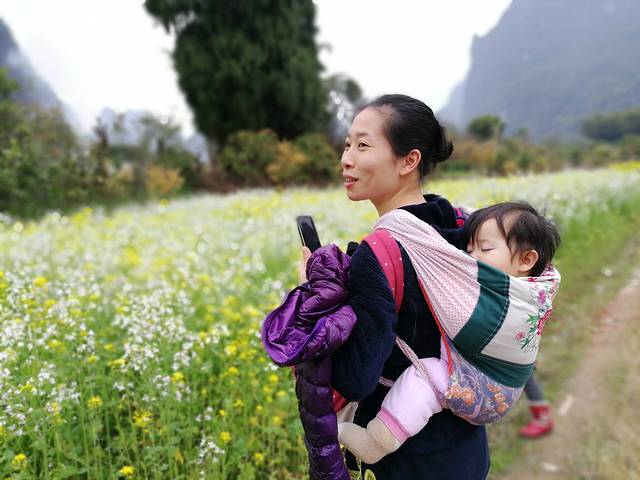 麻麻带着嘉嘉妹,小小家伙对花好像不是很在意,没多会儿就睡着了