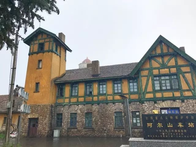之前看到阿尔山火车站的图片时,被它独有的气质倾倒,一直把它看成是我的一个重要景点,想着要在那摆几个文艺的pose。然而,雨一直没停,我只能冒雨咔嚓两张到此一游就走。
