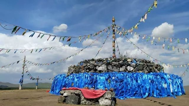 敖包原来是在辽阔的草原上人们用石头堆成的道路和境界的标志,后来逐步演变成祭山神、路神和祈祷丰收、家人幸福平安的象征。