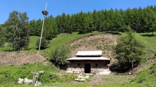这是看到过的最简易的庙,大概是祭山神之类的吧。