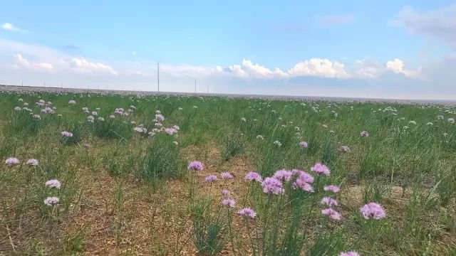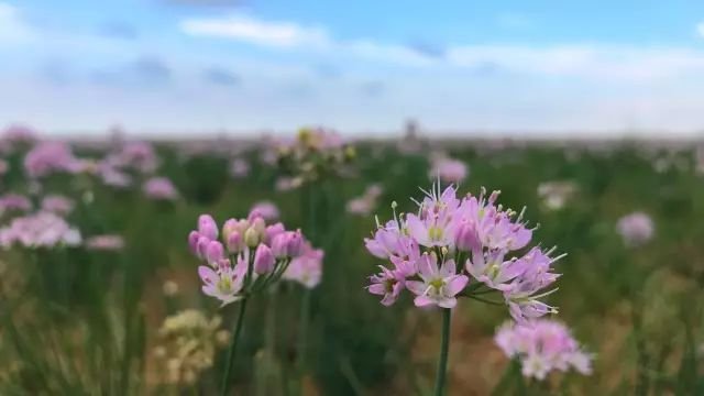 一片很大很大的野生粉紫色韭菜花,忍不住要去接触一下。蒙古族人会用它们来做酱料,不过也有人说这种颜色的不能用,只能用白色的