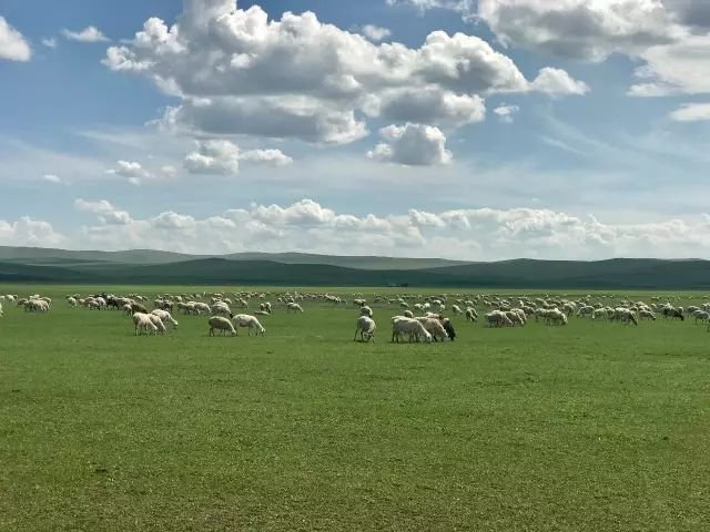 由于放牧,草原已没有风吹见牛羊的景象,但当羊群出现,我们,真正的激动了。