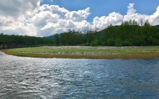 是陈巴尔虎旗的一条蜿蜒曲折的河水,如果不是汛期,最宽处也不过五六米宽窄,长度有290公里。