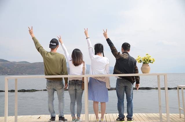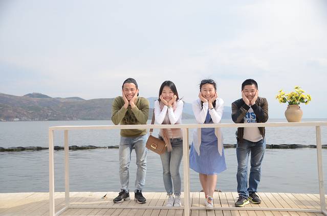 睡个回笼觉之后就出门,沿着洱海边走,一路上都有好多拍网红照片的白桌子、吊篮,收费一人10元,时间不限。我们先去了玉几岛,吃了中午饭后再去拍网红经典照片。