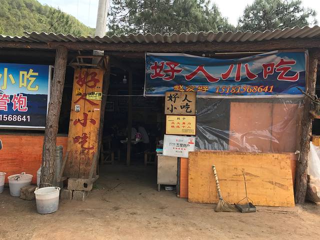 好人小吃在山脚下,几乎是半露天式的棚屋,各种随性简单质朴,活像电视剧上那些大侠长途跋涉停下来歇脚喝茶的客栈。