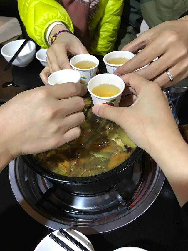 晚上吃泸沽湖排名第一的野生菌火锅,“彩云格姆野生菌火锅”,真的好鲜甜呀,吃这种火锅,老板都会提议你第一口是喝汤,先尝尝汤的鲜美,再吃肉,肉还是蘸之前腊排骨火锅说过的蘸水,好吃😋。老板是本地人,给我们送了苏里玛酒,挺不错的,听说是这种酒是摩梭人走婚的时候喝的🤤~