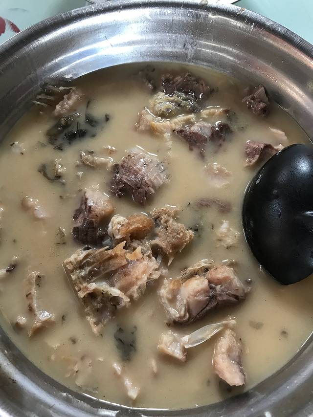 老板说,保证我们从没有吃过那么好吃的松茸鱼汤~现杀的湖鱼,煎酥,再用盐、松茸、泉水汤熬,简单的食材,在柴火的烹饪下,相互渗透,迸发独自的鲜美,汤如奶白,唇齿留香,欲罢不能。连配土鸡汤的辣椒蘸料都是添加了松茸的。