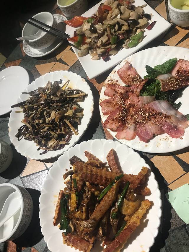 旅游这段时间似乎都习惯了10点钟醒来🤣,泸沽湖的早晨还是依旧在阳台吃早餐,白粥,玉米,小笼包,土鸡米线,然后闲聊待到12点多出发到大洛水吃点评第一的云南菜,最喜欢吃的还是清炒水性杨花😋,特别点的是树皮煎蛋(有图),去大洛水的途中顺路搭了一个徒步者,他说他是山东人,在路上已经行走一个多月了,刚到泸沽湖就接到家里的电话,他妈妈摔伤了,所以要马上飞回去~一个追求诗和远方的人~