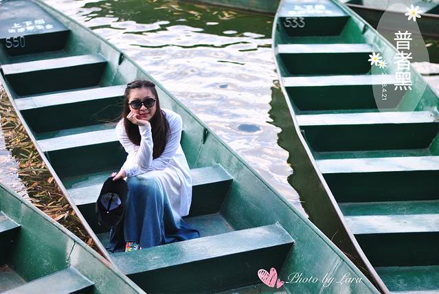 双廊全面整治污水排放,所以吃饭的地方没几个,在一家大排档点了几个小菜,吃饱饱就去拍网红白桌子照。我们两个女生收费了,跟老板说男生只负责拍照,可以不收费(实际上后面老板都不管了,男生也有一起合影),见下图。