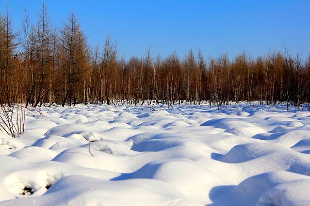 厚厚的雪、蓝蓝的天,