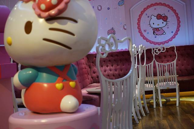 据说是亚洲最大的Hello Kitty餐厅,地铁站的旁边就是它了。