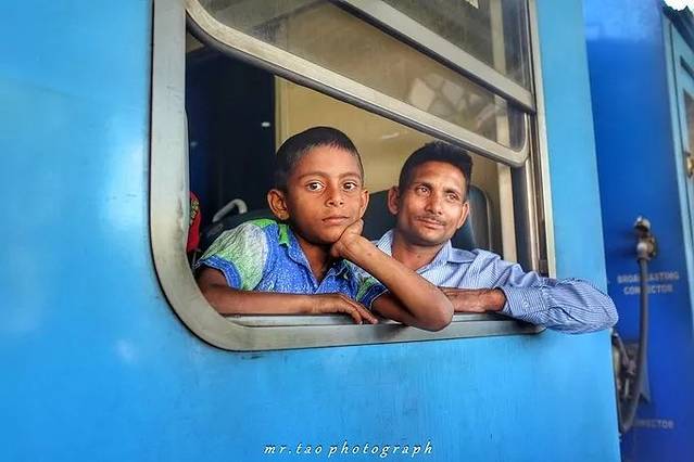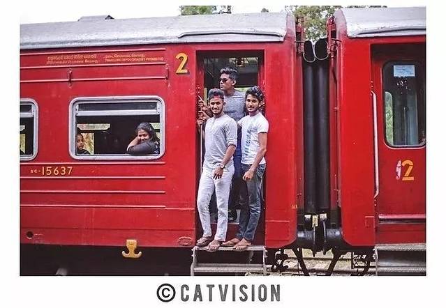 斯里兰卡的火车很有特色,它是蓝色或红色的小火车,没有门,窗户也可以打开,就连座位也是随意坐的。
