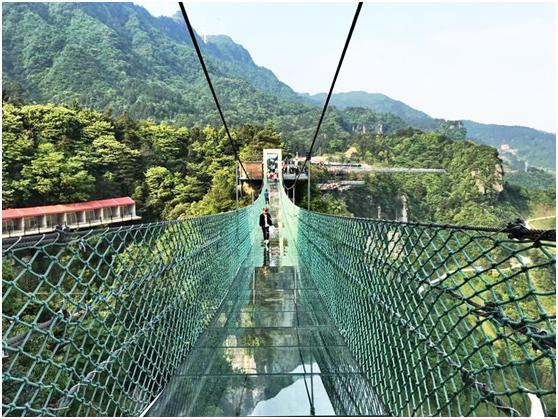 悬于山崖间,地板透明,景致梦幻的玻璃吊桥