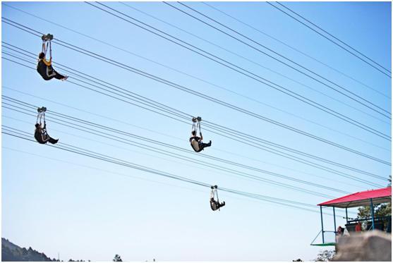 游客中心(中门)——天空悬廊——云端廊桥——高空漫步——步步惊心——极限飞跃——悬崖秋千——玻璃吊桥——高空荡桥——高空速滑1号线(人多放弃等待)——寒冰洞——将军守城——速滑2号线——亿年石——石林盆景——石林迷宫——丛林飞跃——动漫儿童剧场——重返奥陶纪——景区中门