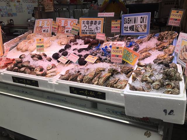 奈良公园就是看了一些鹿,还有时间多,所以就JR坐回去,想说好好的去吃一顿日本的刺身,于是来到了网上在推荐的黑门市场,想说连日本的菜场都这么干净。