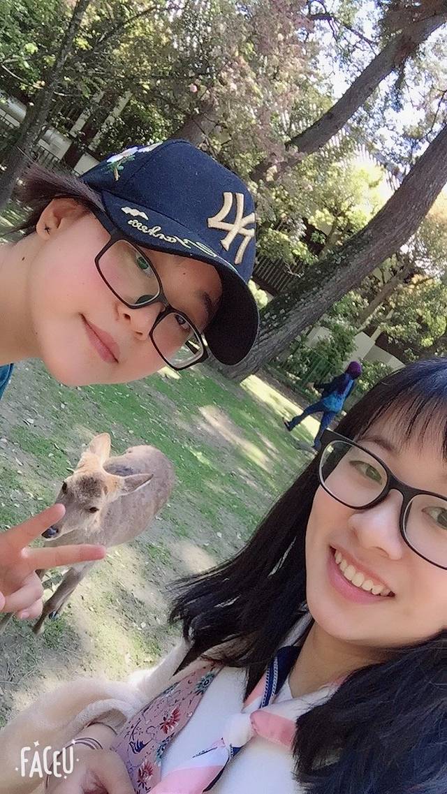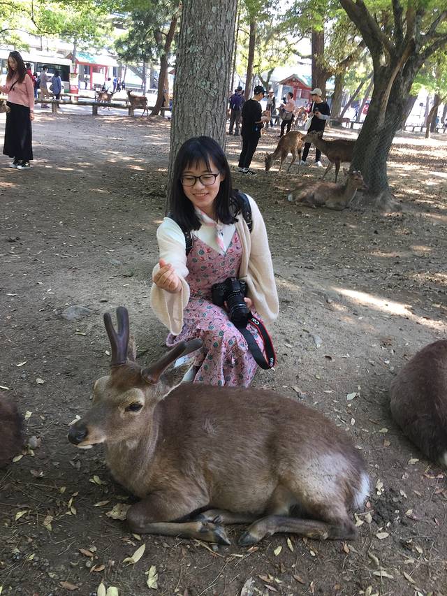 与奈良的鹿合影