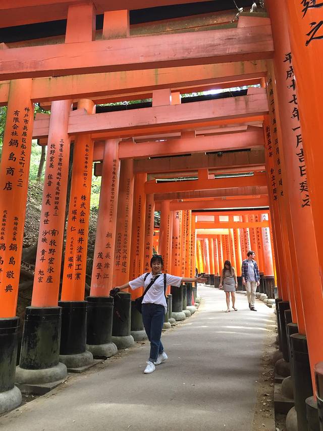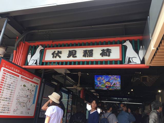 据说京都看的东西会比较多,所以还是蛮期待的。第一站到了伏见稻荷大社,出了站就随着人流走就好,经验:外国人多的地方基本就是景点。