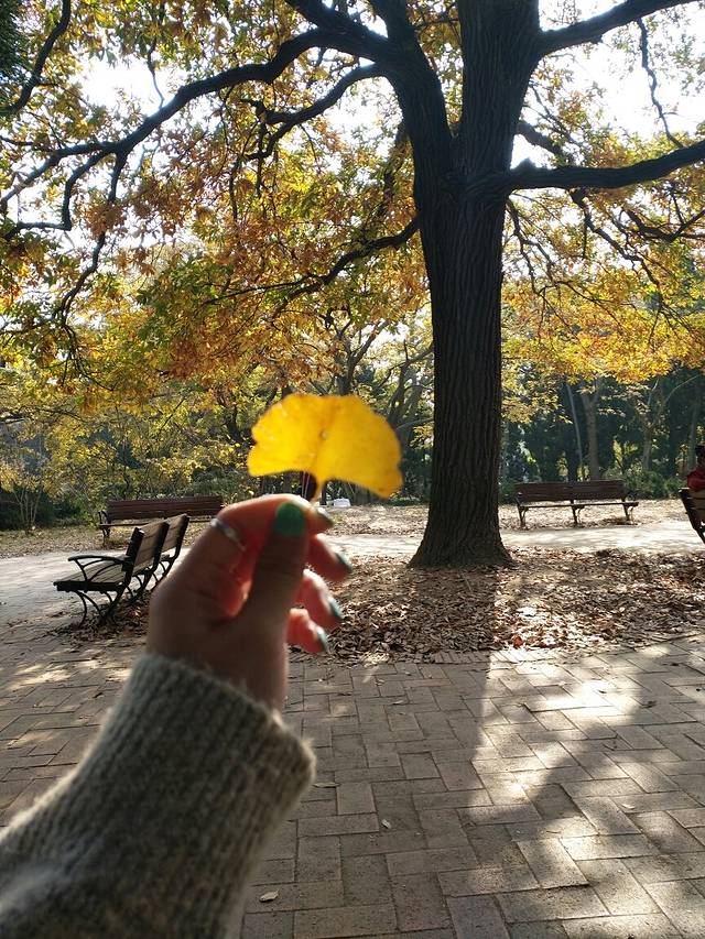 逛累了坐在景区里小公园休息下