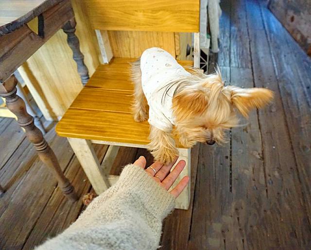 店内的一个小狗狗 超级黏我 !是因为知道我是单身狗属性 同类吗