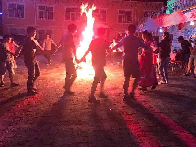 用的银杯让嬉笑当中多了一丝严肃,挺好玩的,听着歌喝着酒。他们还有乐队篝火,让老板帮忙联系了一场。连跳带唱带喝酒,玩翻了。现在想起来还是觉得玩的挺尽兴的